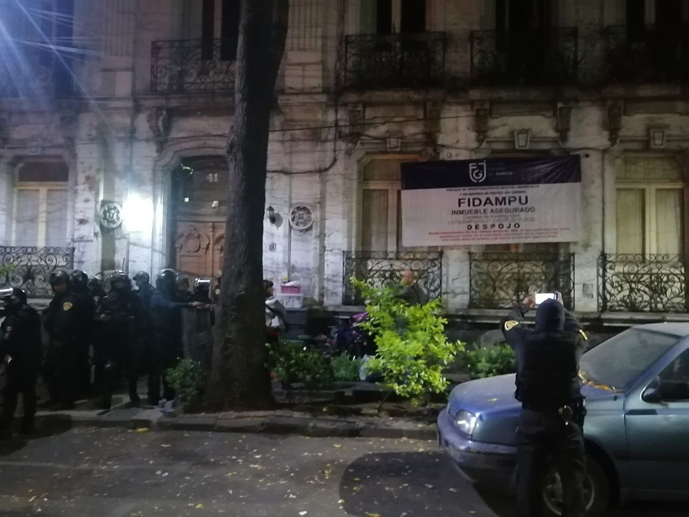 Sobre la fachada del edificio quedó una lona avisando que la Fiscalía de Investigación en Delitos Ambientales y en Materia de Protección Urbana, la FIDAMPU, había asegurado el inmueble por estar incluido en una carpeta de investigación por el delito de despojo.