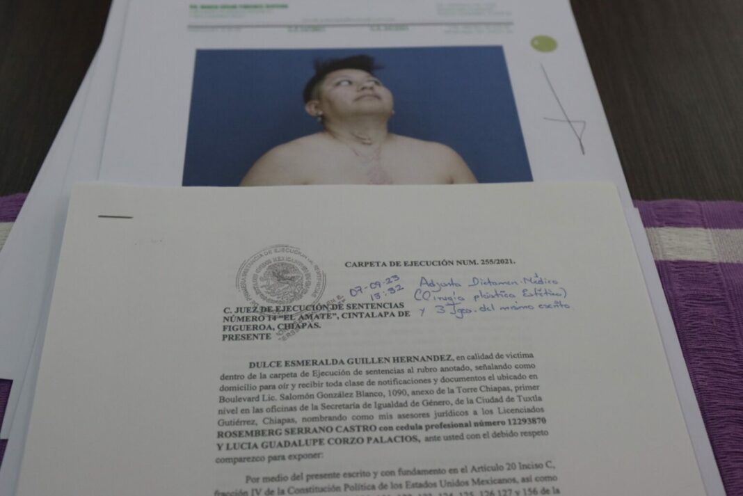 La defensa otorgada por la secretaria de Igualdad de Género pidió a Dulce Esmeralda Guillén Hernández, presentara un peritaje privado que cuantificara y demostrara medicamente el costo y las descripciones de los procedimientos quirúrgicos para su reparación del daño. Por este motivo, en marzo de 2023 se asistió a una consulta médica privada con el Dr. Mario Cesar Paredes Zenteno (Médico que ofrece la defensa dentro del juicio), quien cotizó la cantidad de $30,000 (treinta mil pesos 00/100 MN), por la expedición del dictamen médico, que acredite la o las cirugías reconstructivas necesarias.