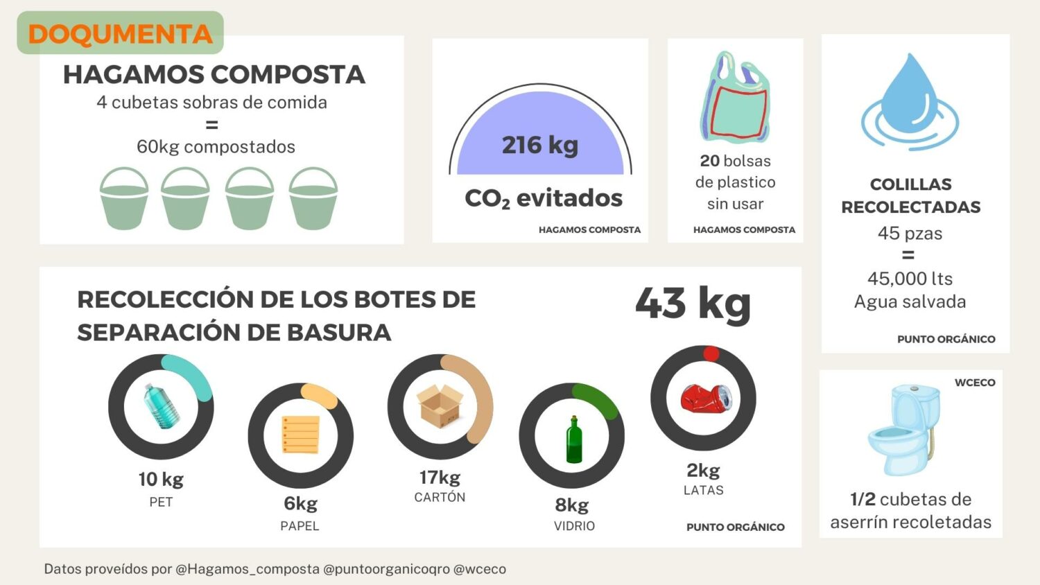 Por otro lado, se encuentra DOQUMENTA el Festival Internacional de Cine y Narrativas de no ficción de Querétaro, que acaba de celebrar su decimoprimera edición en agosto 2023 y que también llevaron a cabo acciones para contrarrestar su impacto ambiental con ayuda de los gestores de residuos.