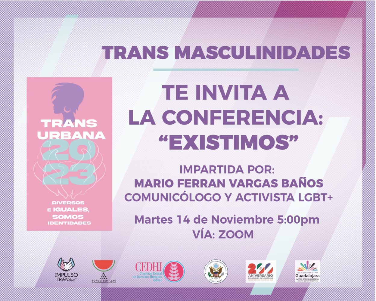 Trans Urbana se llevará a cabo del 6 al 20 de noviembre, este último día es el que se celebra la remembranza de las personas trans. Este festival consiste en la realización de diversas actividades, entre ellas: talleres, cursos y conferencias para toda la familia en un espacio para la inclusión social, convivencia y difusión de información libre de estigmatización.