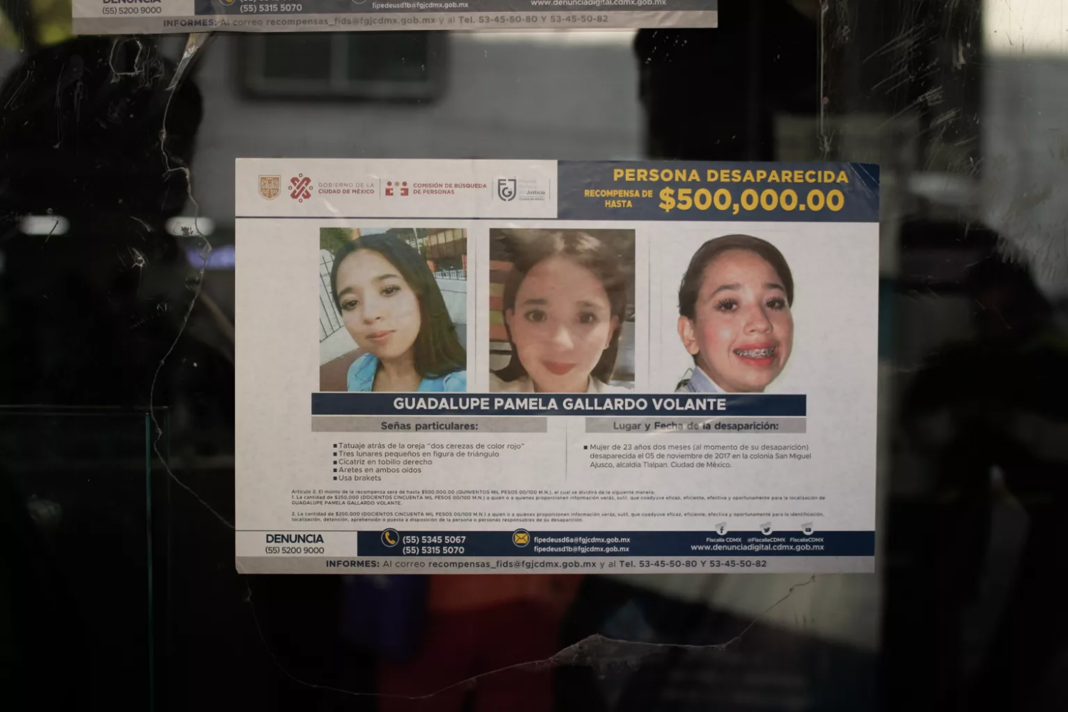 A las 10:30 de la mañana, después de haber cubierto las puertas de la Fiscalía General de Justicia de la Ciudad de México con pesquisas de búsqueda de Pamela y de otras personas desaparecidas que integran el colectivo Hasta Encontrarles, María del Carmen entró al edificio acompañada Edwin Piñón González, representante legal del caso de Pamela.
