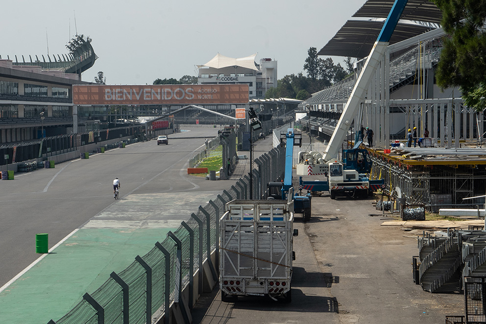 Gradas instaladas en un campo de fútbol para el reciente evento de la Fórmula 1. (Foto: Isabel Briseño).