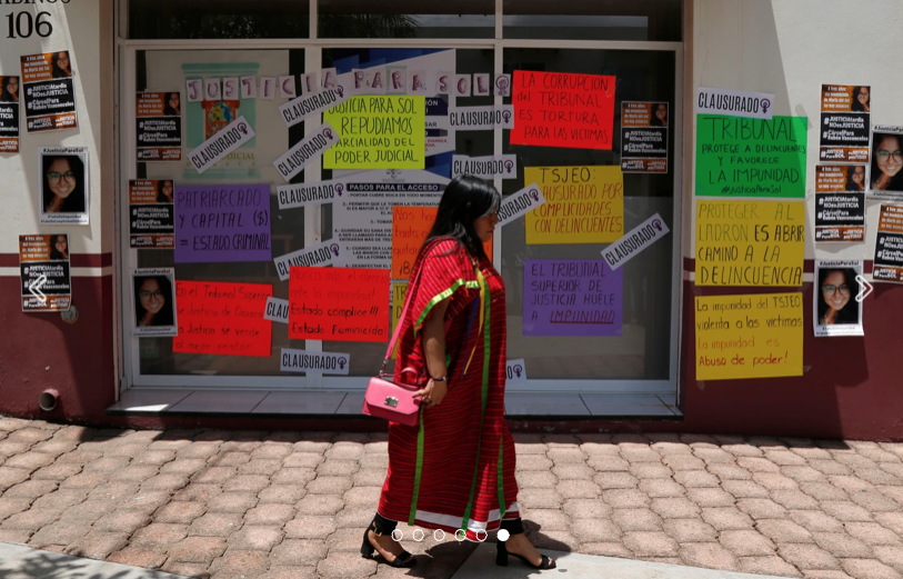 Este 10 de julio, a poco más de un mes de que se cumpliera un año más del feminicidio de Sol, más de una decena de mujeres clausuran simbólicamente las oficinas del Consejo de la Judicatura federal. En Oaxaca se asesina a la justicia, dice Yésica Sánchez en el micrófono. Las acompañan madres buscadoras y con familiares víctimas de feminicidio.