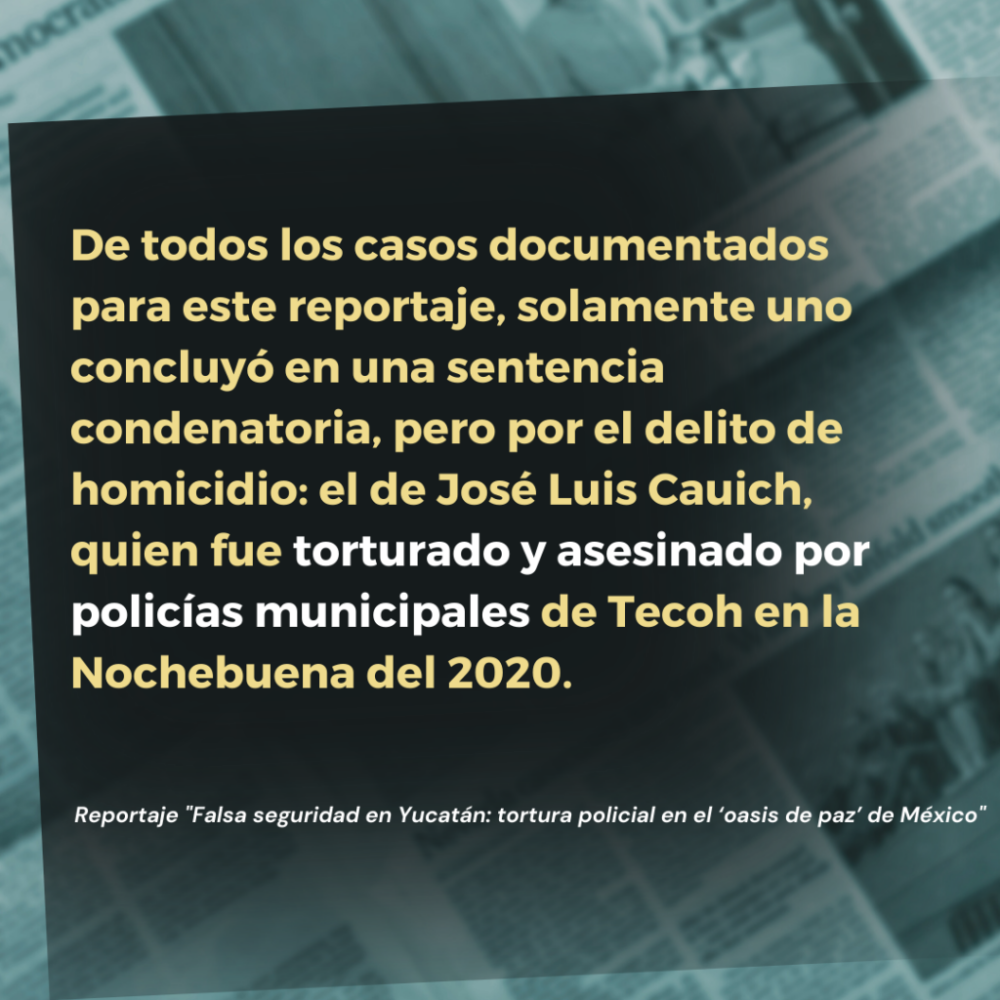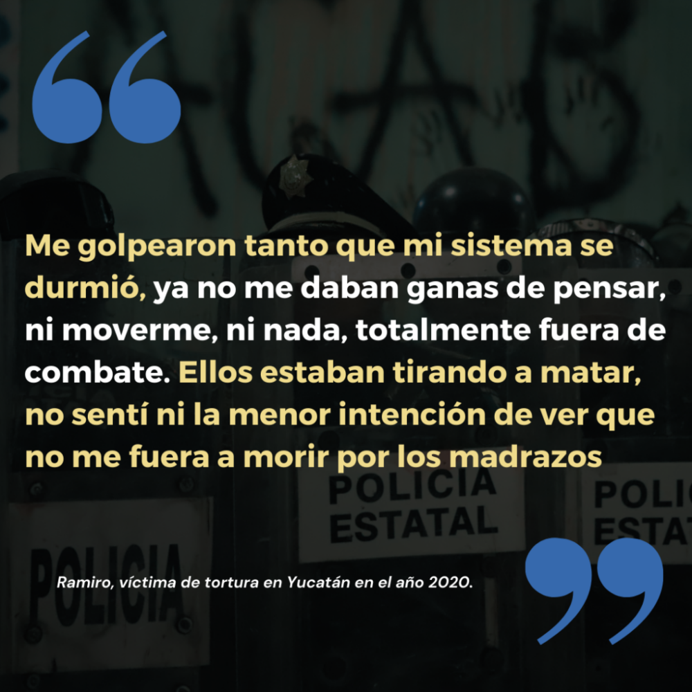 Los testimonios documentados en este reportaje e incluso las propias estadísticas apuntan a que en Yucatán la policía tortura y nadie quiere reconocer ese problema. Las huellas de este delito en las víctimas, no solo son físicas, sino también psicológicas; sumadas a la impunidad e indiferencia de las autoridades de un Estado que se dice ser el más seguro del país.