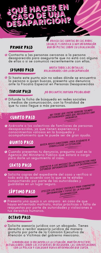 Respecto a las desapariciones intermitentes con el fin de la explotación laboral de las mujeres, no han existido políticas correspondientes que prevengan este delito, que indiquen cómo actuar cuando una mujer es localizada y las investigaciones simplemente son abandonadas, plantea la abogada Sandra Quiñones: