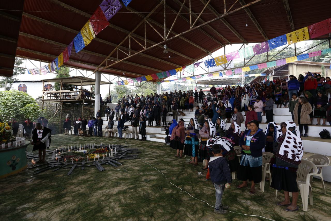 “¡Alto a las masacres en Palestina! Que se detengan las masacres en otras partes del mundo. Alto a los asesinatos, muertes, desapariciones, desplazamientos en la zona fronteriza de Chiapas. Que terminen las masacres en Chiapas y en todo México. Y que cesen las muertes aquí, en el municipio de Chenalhó.”