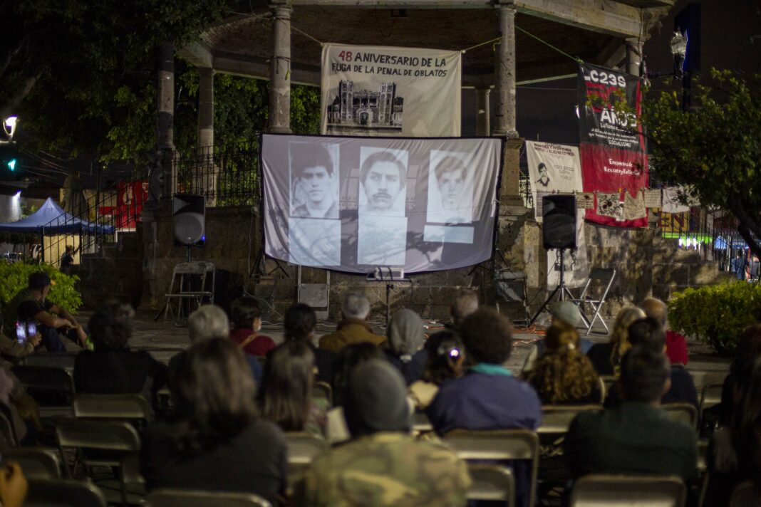 A 48 años de la fuga de la Penitenciaría de Oblatos, los colectivos Memoria y Resistencia Francisco Mercado Espinoza y Reyes Crespo, conformado por ex guerrilleros de la Liga Comunista 23 de Septiembre (LC23S), organizaron un conversatorio y presentaron el documental “Oblatos, el vuelo que surcó la noche” del director Acelo Ruiz Villanueva en la Plaza de San Andrés en Guadalajara, la noche del lunes 22 de enero.