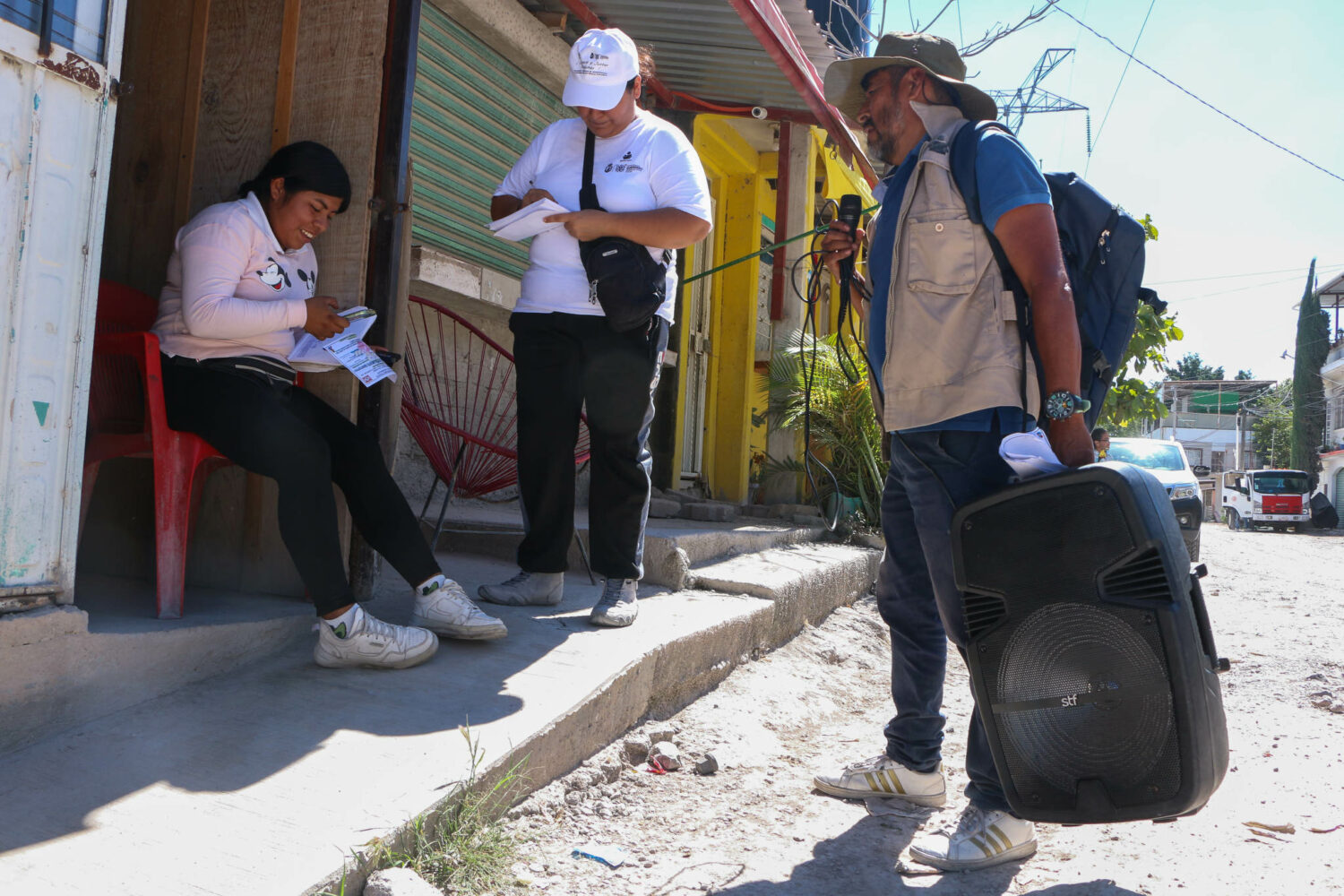 Recuerda que ya había implementado esta estrategia en el municipio de Leonardo Bravo. En algunas comunidades aún se informa a la población a través de un aparato de sonido. Para 1997, Teliz pagaba de su bolsillo 15 pesos mexicanos (el equivalente a unos 63 pesos de hoy, unos 4 dólares estadounidenses) por tres anuncios que se transmitían por un altavoz que se escuchaba en casi todo el pueblo. Pero era una inversión excesiva a largo plazo. Entonces, gestionó ante la alcaldía de ese municipio una bocina pequeña con la que publicitaba la educación por las calles. Notó que la gente salía de sus casas para verlo y pensó que era una buena estrategia. Era algo novedoso para las personas.