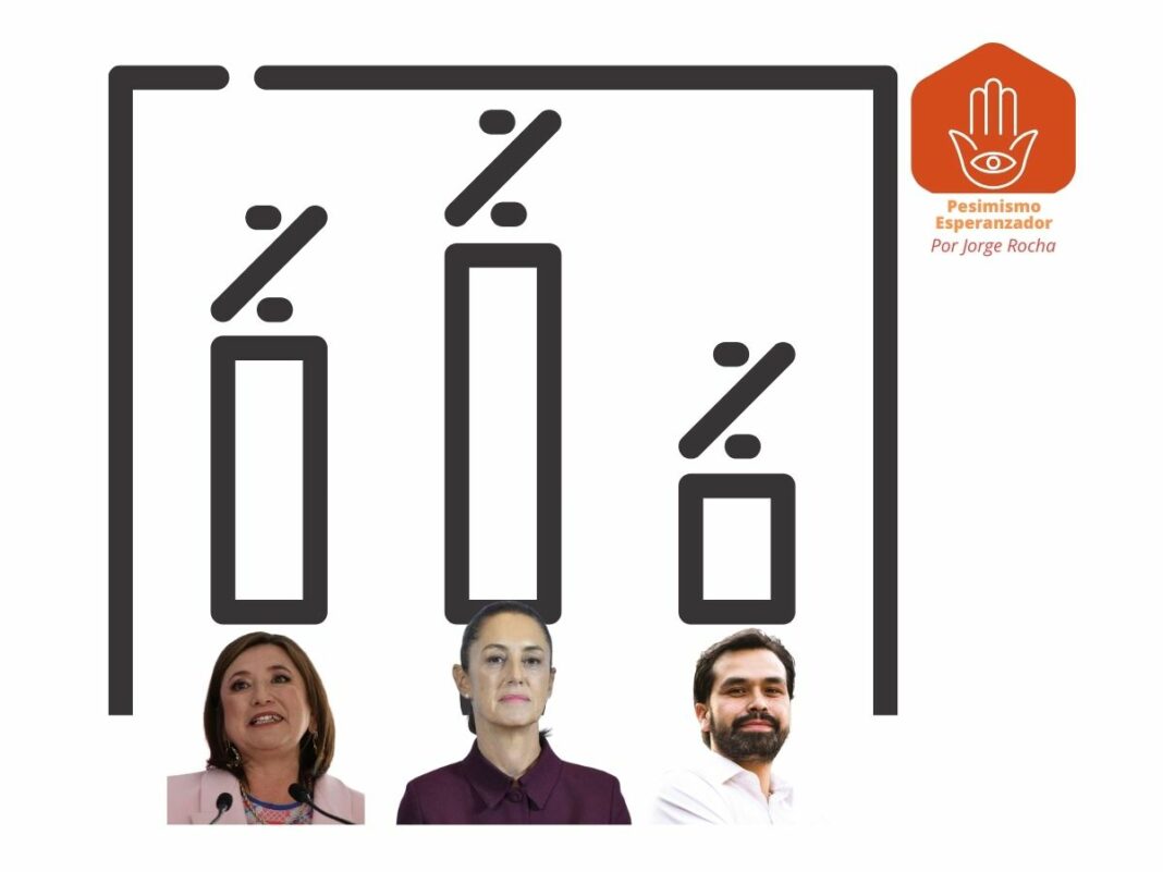 Ahora bien, ya comenzaron a aparecer las encuestas electorales que incorporan al nuevo candidato del Partido Movimiento Ciudadano (MC) en las mediciones electorales y que muestran los saldos de las pre-campañas en lo que se refiere a la intención del voto. En la encuesta que presenta Enkoll, W Radio y El País en esta semana, muestran que la abanderada del Partido Movimiento de Regeneración Nacional (Morena), Partido Verde y Partido del Trabajo (PT) tiene 54% de intención del voto; Xóchitl Gálvez del Partido Revolucionario Institucional (PRI), del Partido Acción Nacional (PAN) y del Partido de la Revolución Democrática (PRD) cuenta con el 27% de las preferencias electorales; Jorge Álvarez Maynez de MC tiene el 3% de la preferencia electoral; 7% afirma que no votará por ninguno y el 9% no sabe por quién votará. También el periódico El Financiero presentó los resultados de una encuesta, donde muestra que Claudia Sheinbaum (Morena-PT-Partido Verde) tiene el 48% de las preferencias electorales; Xóchitl Gálvez (PAN-PRI-PRD) cuenta con el 32% de la intención del voto; Jorge Álvarez Maynez obtiene el 10% de las preferencias electorales; y los indefinidos son el 10%.