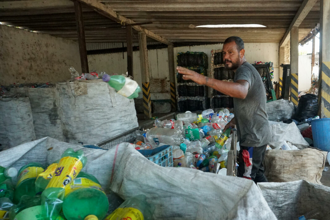 Empezó en 2018, conduciendo un automóvil por las calles del pueblo, anunciando la compra de plástico. “Era considerado un loco por salir a recolectar plástico”, dice. Después de vocear durante tres meses todos los días, logró que la gente comenzara a recolectar el plástico de las calles para vendérselo.