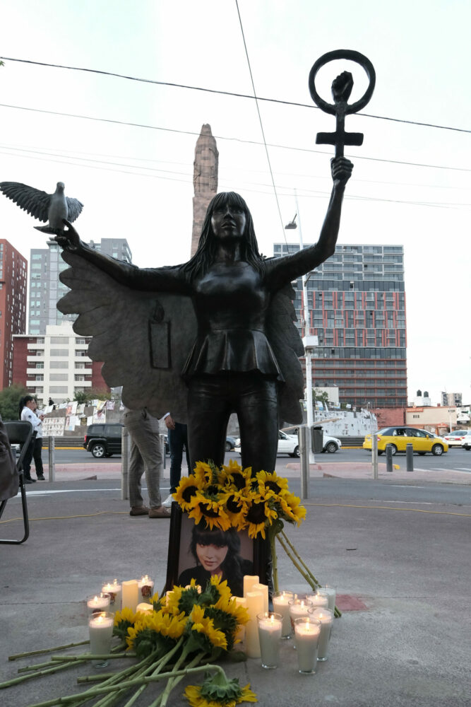 Una vez develado también goza de permiso el monumento memorial, necesario y justo en esta larga ópera feminicida que tenemos como entidad, permanecerá dispuesto y protegido por el permiso oficial, tal como ya sucedió con el memorial oficial para las víctimas de siniestros viales que fue presentado y aplaudido por el Estado ese mismo mes; o la escultura Sincretismo, cuya forma proviene de un pasado subterráneo que funde a la Virgen de Guadalupe y la Coatlicue; y fue creada por el artista Ismael Vargas, aunque la idea se remonta a Cortés y Saturnino Herrán.