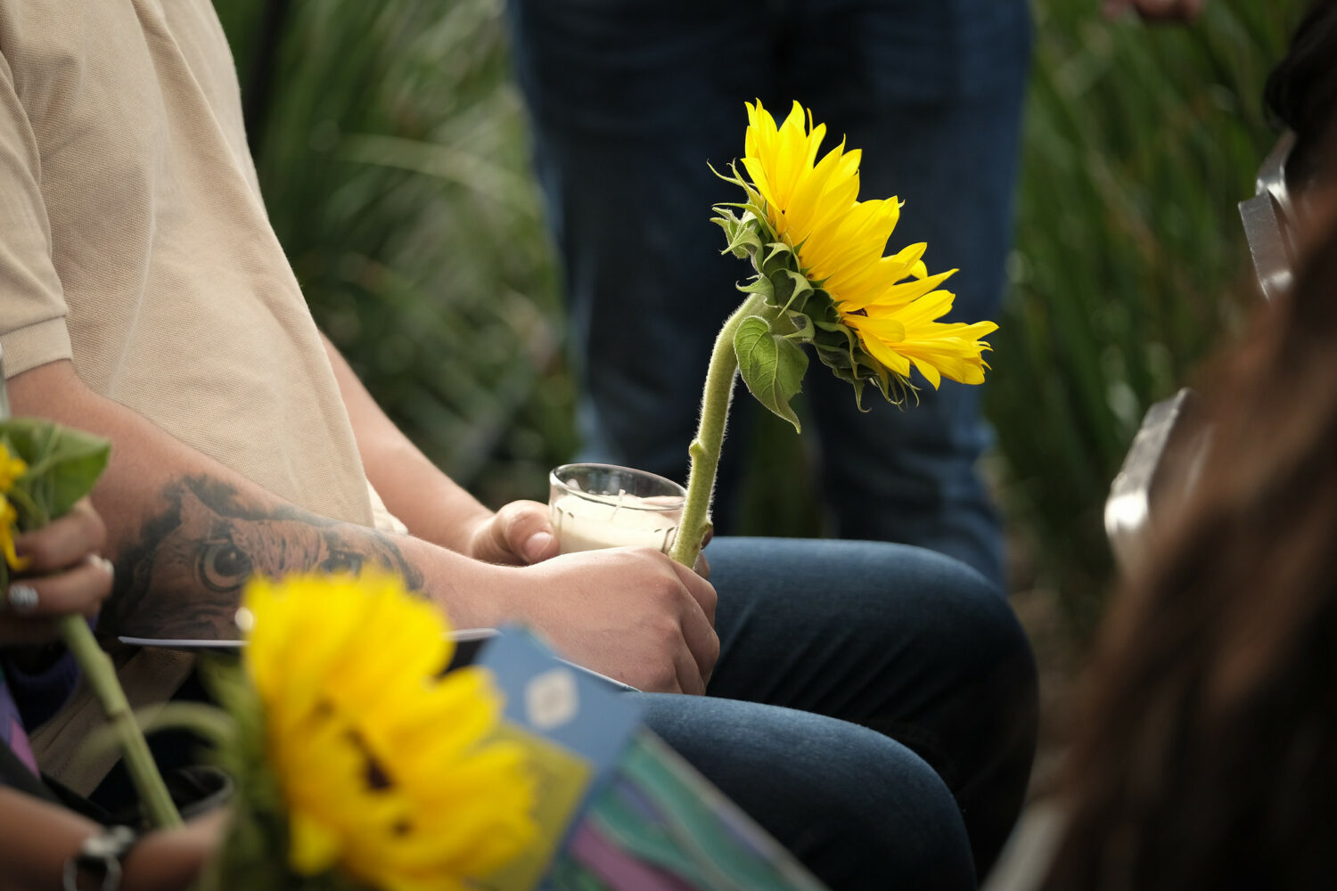 Terminan las palabras del presidium y finalmente los seres queridos pueden presentar sus afectos, colocar velas e imágenes ante el monumento memorial.