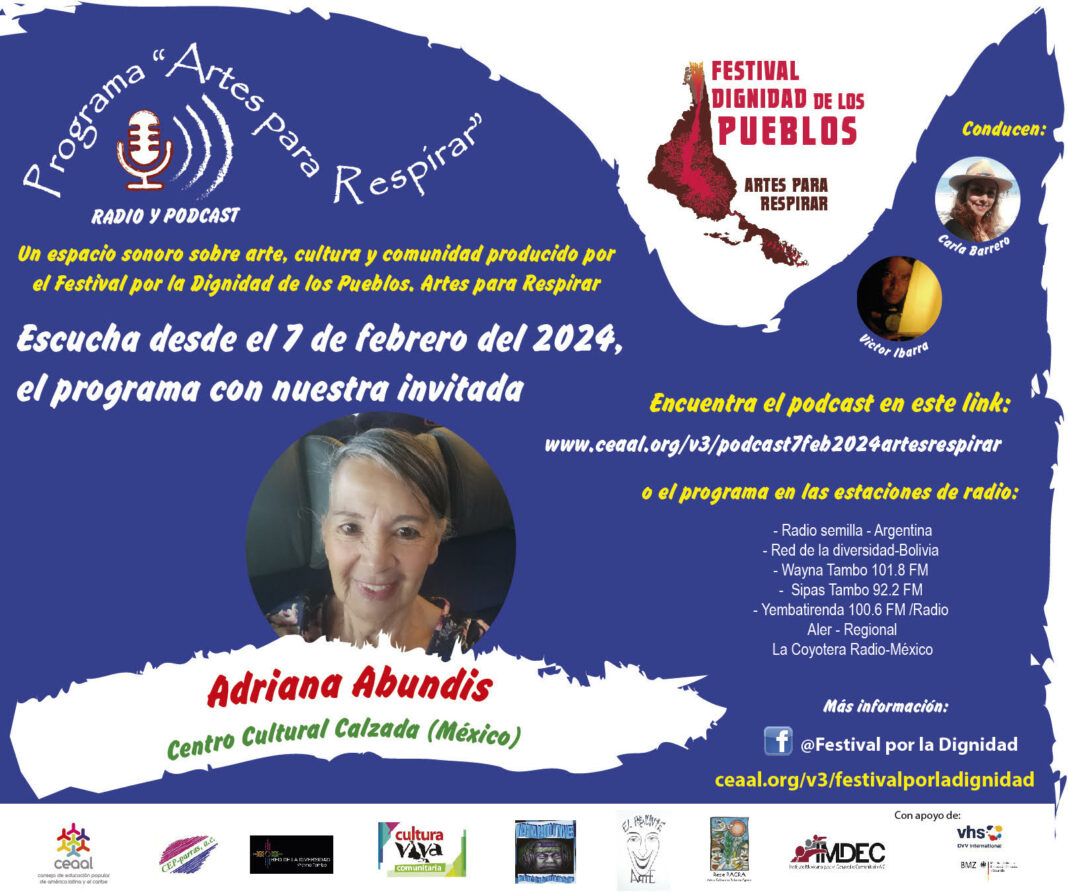 Este programa de radio y podcast “Artes para Respirar” es coproducido por el Colectivo del Festival de la Dignidad de los Pueblos.