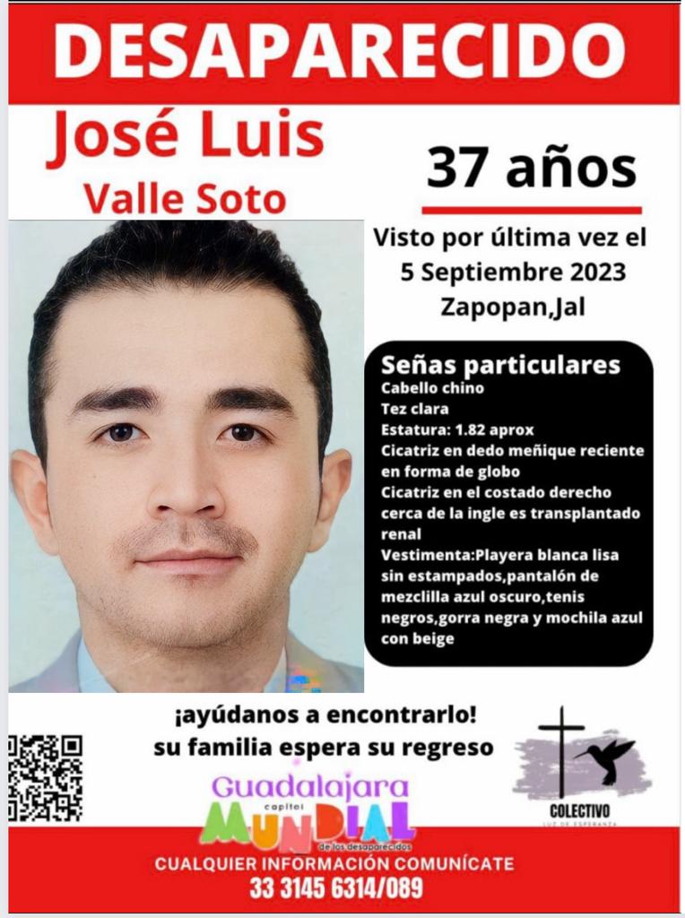 María José no entiende el por qué nadie quiere decirle qué pasó con su esposo, José Luis Valle Soto, quien fue desaparecido el 5 de septiembre de 2023 en la colonia La Moraleja en Zapopan. En su búsqueda, ella le ha entregado a la Fiscalía de Jalisco toda la información que le ha sido posible, pero a cambio sólo ha recibido nulos resultados.