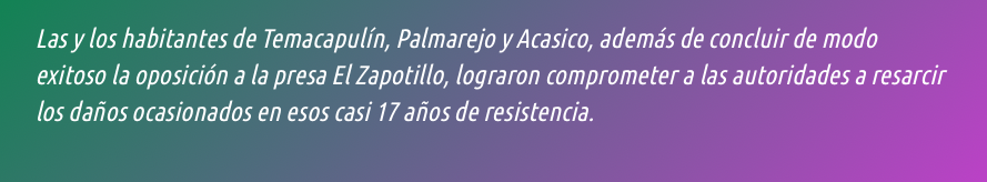 Con eso se cerraba el capítulo de más de 16 años de resistencia contra la presa El Zapotillo. El movimiento ha reconocido la voluntad política del presidente López Obrador, pero siempre como consecuencia de las presiones que ejercieron las movilizaciones. El acuerdo que se consiguió para reacondicionar la presa fue la solución propuesta por las comunidades junto con sus asesores.