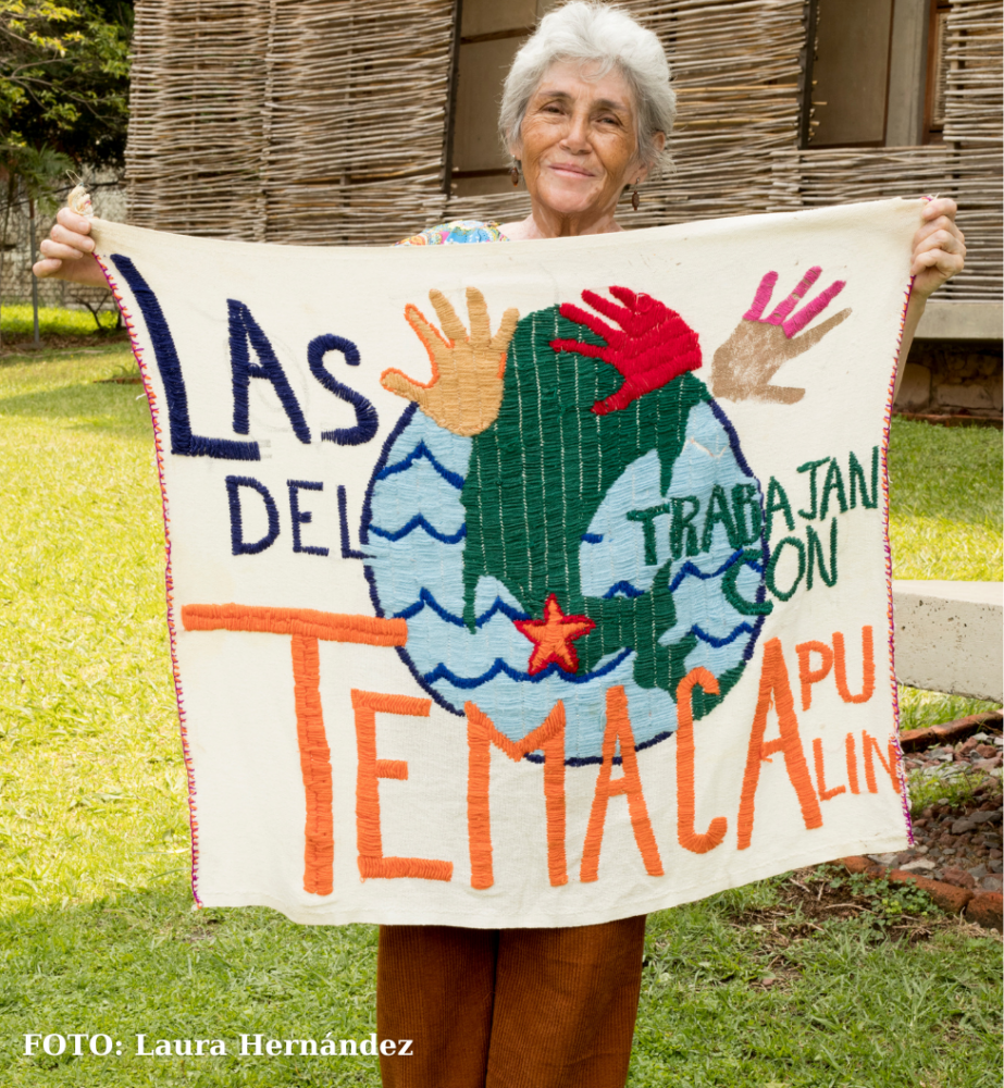 A la cita con Cimacnoticias Marichuy acude con una manta bordada a mano. En cuanto tiene oportunidad la despliega para leer las consignas, todas dirigidas a salvar a “su Temaca”, como le dice con cariño. A lo largo de la conversación entona partes de canciones dedicadas a la resistencia.