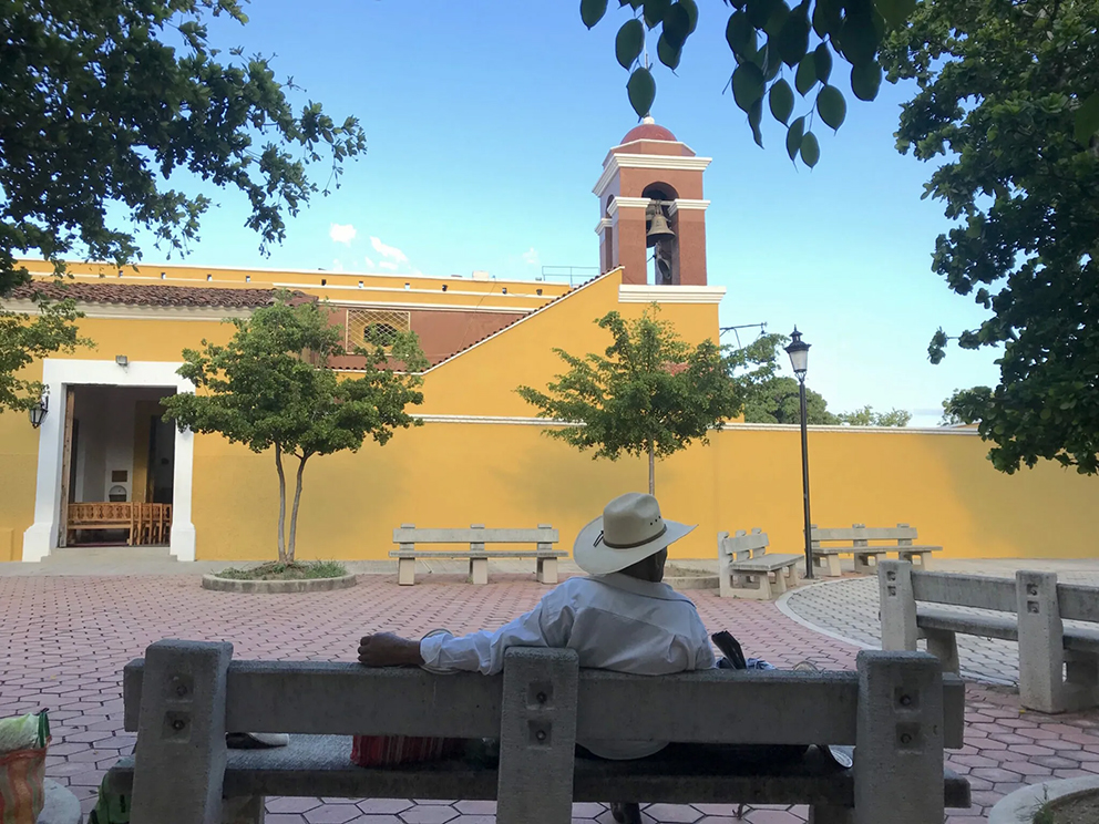 El lugar que no lo nombra se caracteriza por una iglesia amarrilla, la misma que sirvió de modelo para que Monroy retratara un Autlán rural y cotidiano. Frente a la construcción y atravesando el parque en línea recta, hay una cabina de teléfono que anuncia la llamada en busca de taxis disponibles. La llamada no es contestada, en ausencia de quien levante el teléfono; no se puede confirmar que se conoce al lugar como “Jardín J. Atanasio Monroy”, así que continúa llamándose “Las Montañas”.