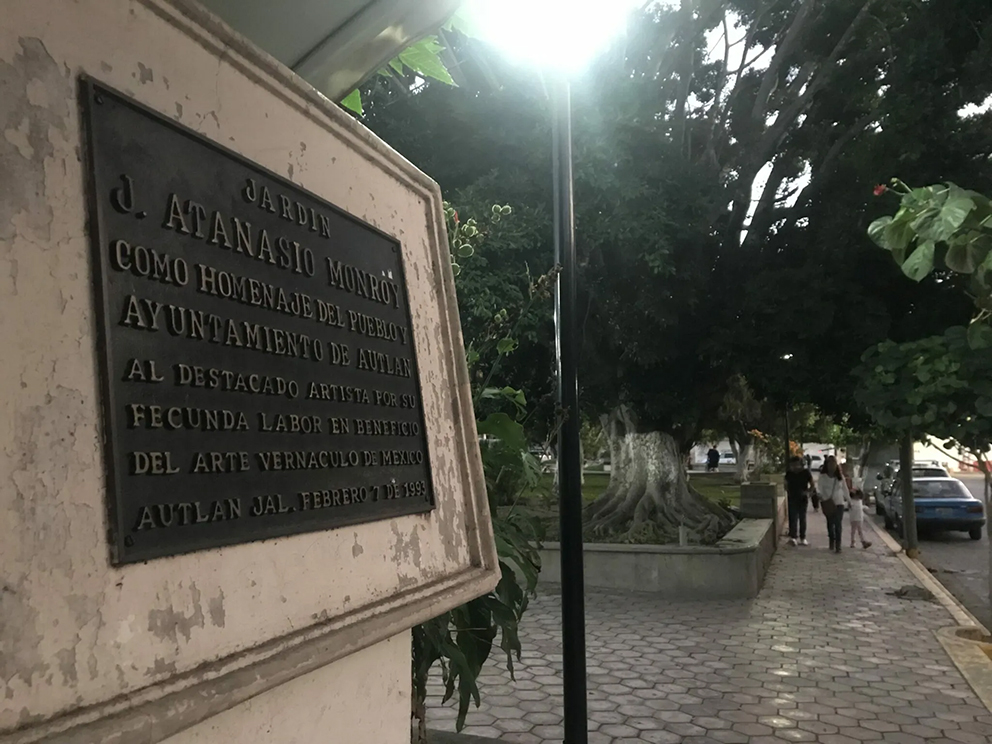 110 años más tarde de su llegada al barrio más antiguo de Autlán, la multitud camina por un jardín que lleva su nombre pero es llamado de otro modo que no pertenece a su legado familiar. Su apellido es silenciado de inicio a fin cuando los transeúntes llaman “Las Montañas” al parque que desde 1993 lleva el nombre de J. Atanasio Monroy, por su “fecunda labor en beneficio del arte vernáculo en México”, según la placa situada en uno de los espacios del jardín.