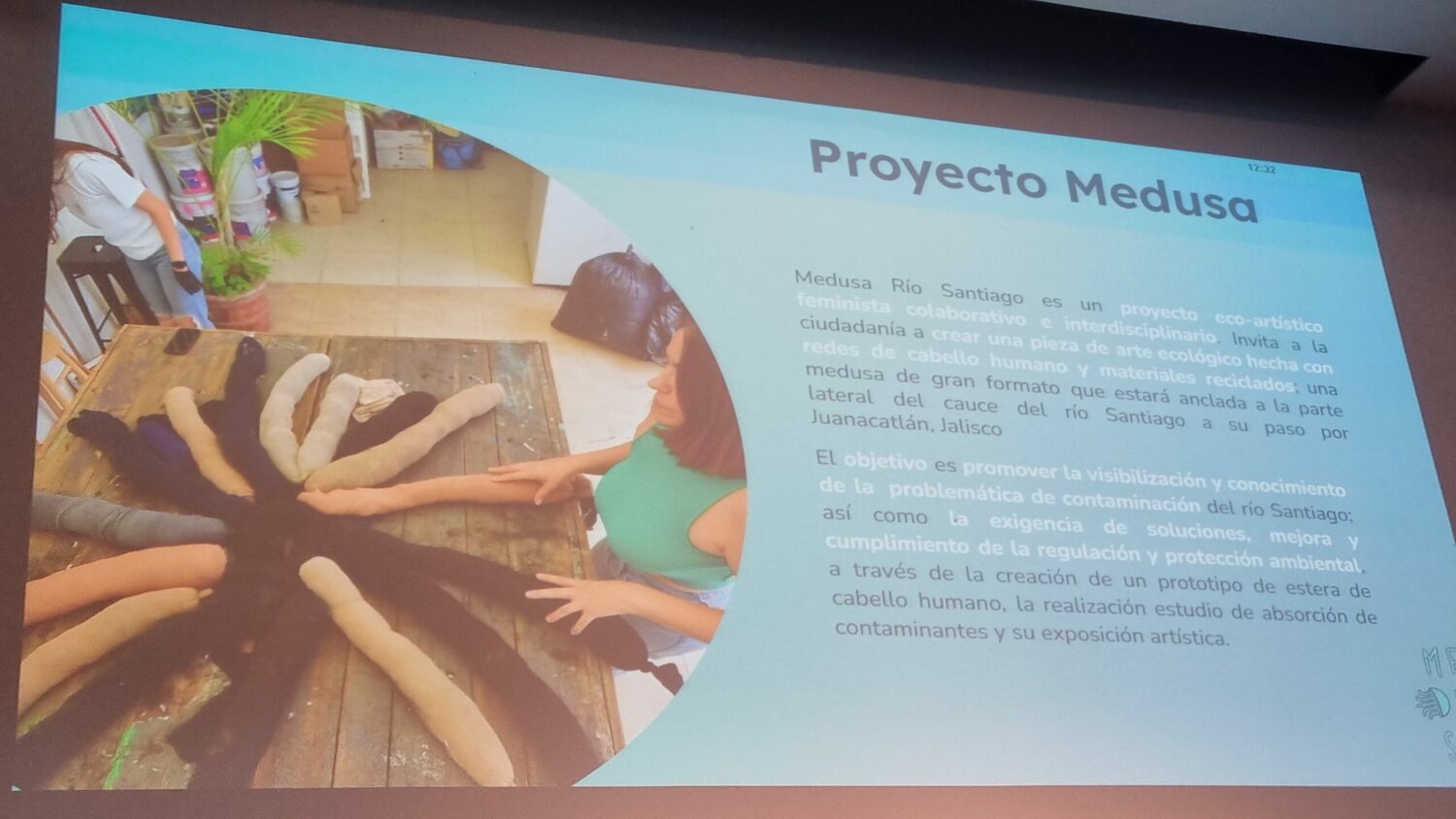 En ese sentido,Eduardo Santana, director del Museo de Ciencias Ambientales explicó que como parte del entramado de conocimientos que atraviesan la realización de esta pieza, para el desarrollo del proyecto Medusa consultaron a diversas personas del área de las ciencias quienes confirmaron que “el cabello humano tiene una gran capacidad de absorción de metales pesados” y señaló que cuatro centros universitarios de la Universidad de Guadalajara participarán en el análisis de los metales pesados que logren captar las redes que serán lanzadas al río.