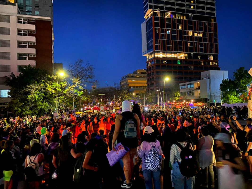 Movilizadas por la consigna “Florecer desde las resistencias”, este 8 de marzo de 2024 más de 50 mil mujeres, integrantes de comunidades disidentes, niñas, adolescentes, madres y familias buscadoras, mujeres con discapacidad, cuidadorxs, activistas y defensorxs del medioambiente y la vida, maestrxs, estudiantxs, trabajadorxs, migrantxs, refugiadxs, madres que luchan por la justicia, hicieron suyas las calles de Guadalajara en un llamado histórico a la unidad y el cambio social colectivo.