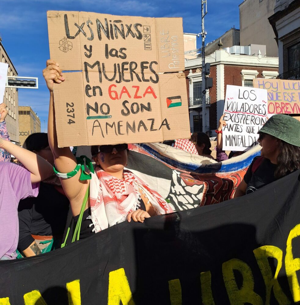 Con las consignas: “Las mujeres de Gaza, no son una amenaza” y “Desde el río hasta el mar, palestina vencerá” se hizo presente en las calles de Guadalajara el apoyo y solidaridad hacia las mujeres y niñas palestinas que resisten en la franja de Gaza, así como a todos los pueblos que sufren los efectos de la guerra.
