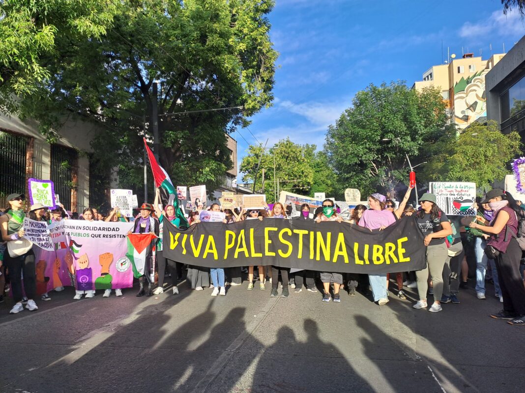 La marcha del 8M fue el llamado de las mujeres a la indignación, a la conciencia, visibilidad y justicia ante la crisis humanitaria que resisten los pueblos que luchan contra el exterminio. Por ello, exigieron el cese inmediato del fuego contra el pueblo de Palestina, así como la ruptura de relaciones con el estado de Israel.