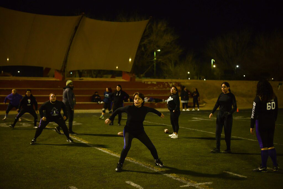 Son madres, hijas, amas de casa, empleadas de maquiladora, profesionistas, maestras y estudiantes, de distintas edades, que se reúnen por las noches, durante esta temporada del año, se convierten en las Brujas que reúnen tres noches a la semana para entrenar y jugar futbol americano.