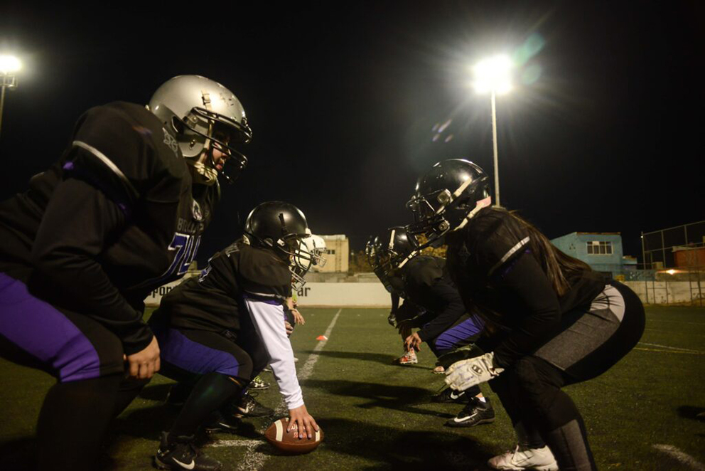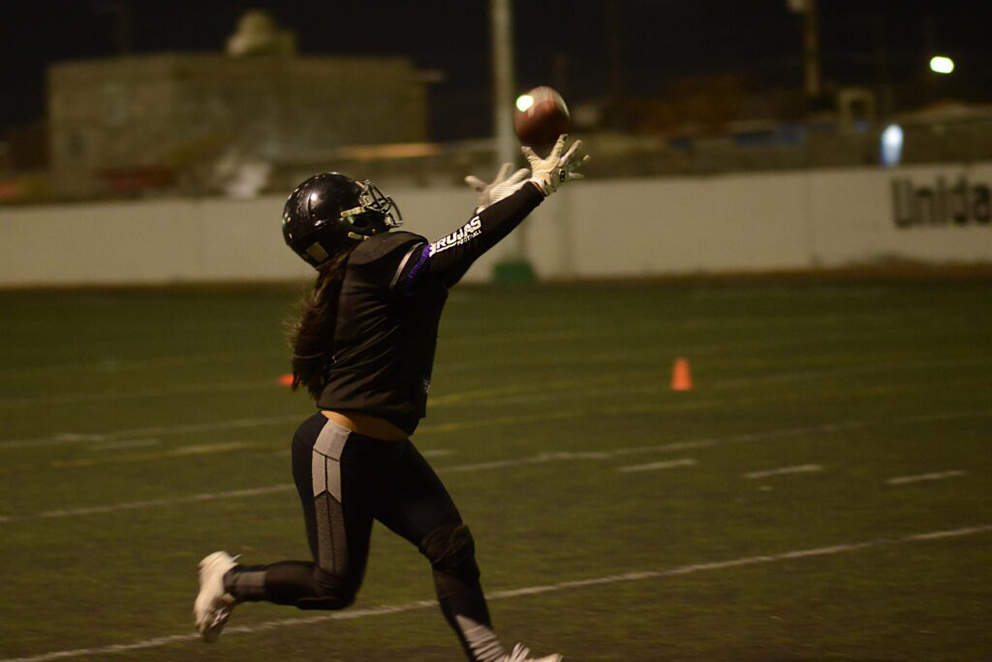 Son las 8 de la noche. Isela camina a paso veloz hacia un complejo deportivo de Villas de Salvárcar donde retomará su entrenamiento. Ella es linebacker de Brujas, un equipo de futbol americano femenil en el que participan amigas y vecinas de la colonia marcada por la tragedia en el suroriente de la ciudad.