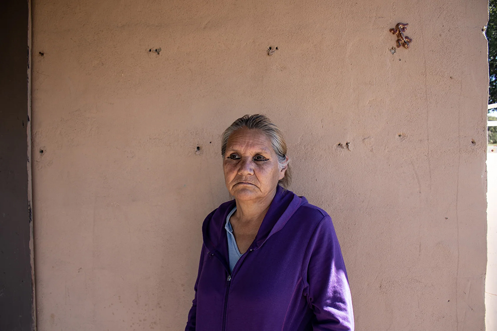 La fuerte ventisca sacude las hojas metálicas del tejado y el estruendo nos sobresalta. Los ladridos de sus perros y el motor de algún vehículo son los únicos ruidos que quiebran el silencio. Yolanda escucha a diario las camionetas de narcotraficantes, a menudo en convoy, que pasan frente a su casa por el camino que conduce a Mexicali, Tecate y Ensenada, puntos clave de la ruta del contrabando hacia Estados Unidos.