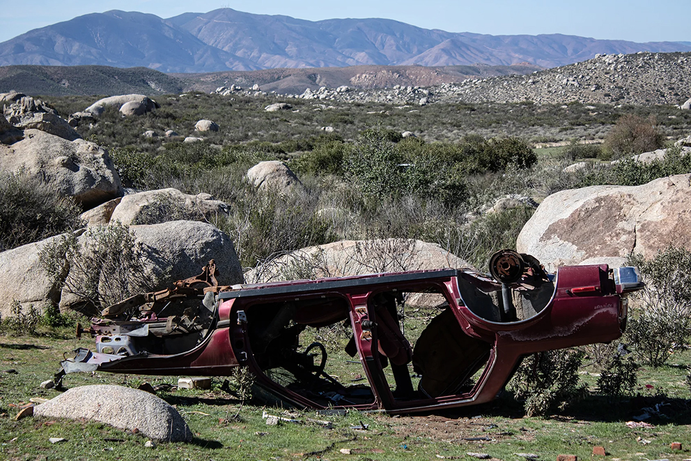 Óscar vivía sólo en un cobertizo muy a las afueras de Tecate, ciudad fronteriza a una hora de Tijuana. Su auto está volteado y despiezado a un costado del camino de terracería que lleva hasta la remota vivienda. En la cerca de alambre que había decorado con plantas nativas, apenas sobrevive un cactus. De la fachada salmón que solía tener repleta de carteles revolucionarios con imágenes de Emiliano Zapata o Pancho Villa, ahora sólo cuelga un lagarto de barro. Norma acaricia la figurita como si fuese el rostro de su hijo.