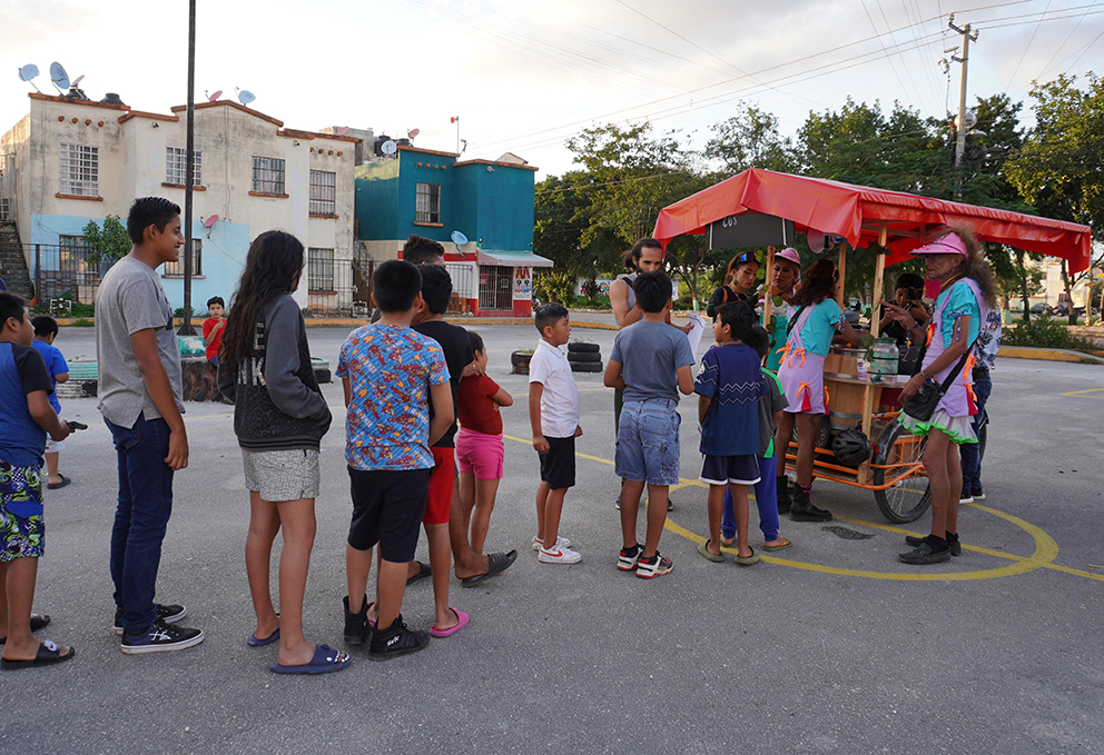 La segunda parada fue a cuatro kilómetros, en un lugar donde hasta hace dos meses era un terreno baldío, paso obligado a la hora de ir al trabajo o la escuela, donde los asaltos eran la regla y donde arrojaban cuerpos con regularidad, pero que ahora, gracias a la intervención de los vecinos, es un parque público con playgrounds y demás instalaciones para infantes y adolescentes. Esto, en Villas Otoch Paraíso, que es la colonia más violenta de todo el sureste mexicano y donde han ocurrido más de un crimen de odio contra la comunidad LGBT+; el último, un transfeminicidio cometido a puro golpe de martillo.