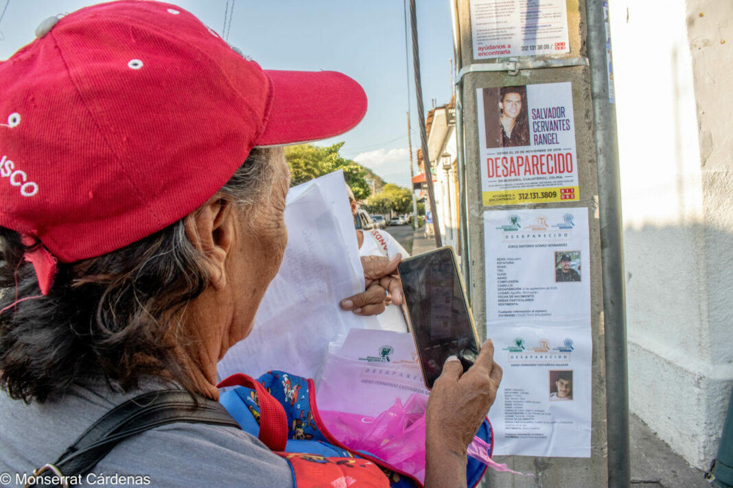“Es una forma de unirme y de empatizar con las demás compañeras”, explica doña Imelda Velasco cuando le pregunto por qué este viernes recorre los municipios de Colima, Comala y Villa de Álvarez pegando fichas. “Mi interés es encontrar a mi hijo y a los de todas mis compañeras”, expresó.