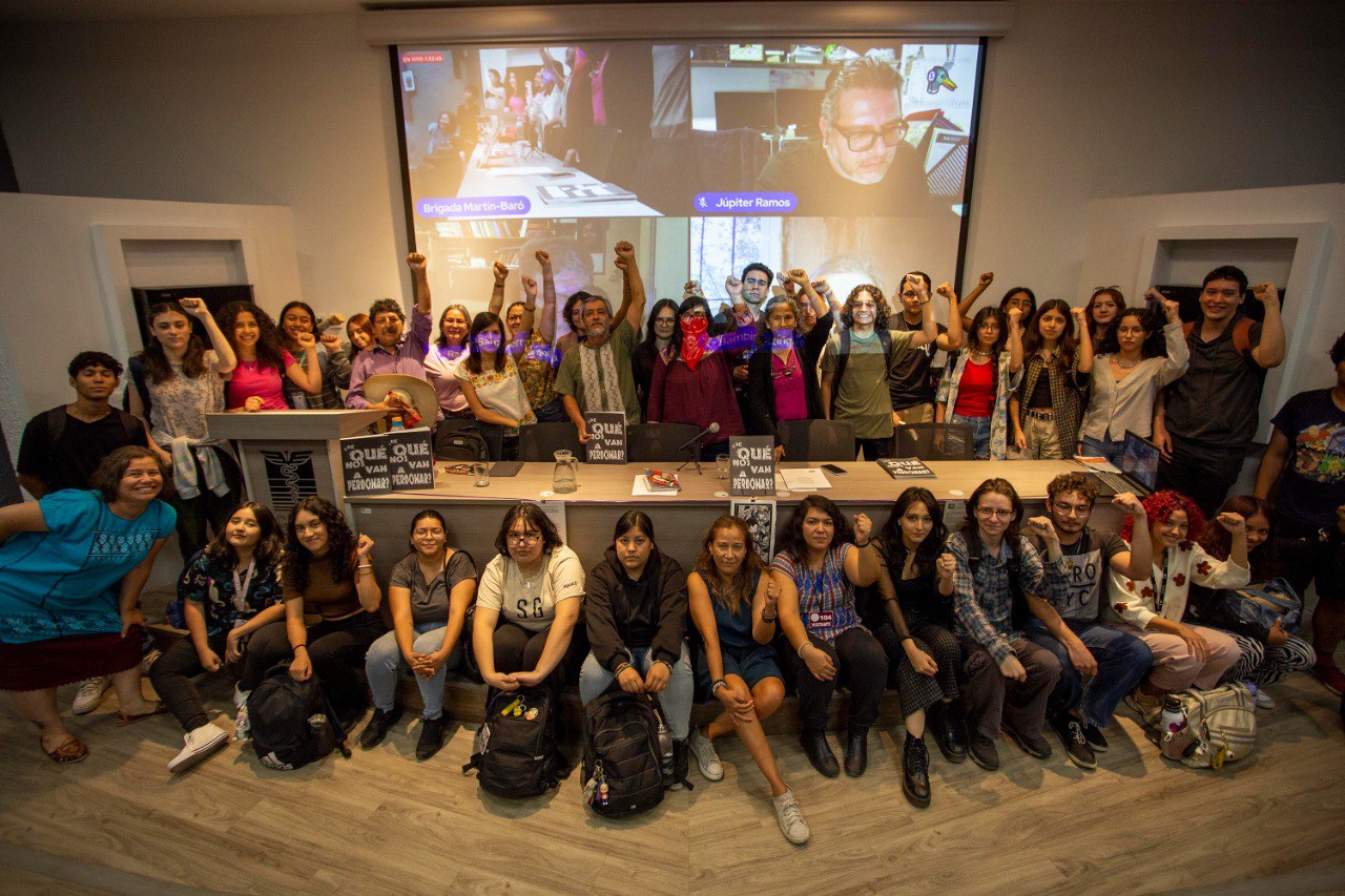 Guadalajara, Jalisco, 29 de abril de 2024.- Este lunes, en el Centro Universitario de Ciencias de la Salud (CUCS), se llevó a cabo la presentación del libro “¿De qué nos van a perdonar?”, evento organizado por la brigada Ignacio Martín-Baró. La obra, editada en conmemoración de las tres décadas del EZLN, fue introducida por el escultor Alfredo López Casanova, quien expresó su gratitud por el considerable interés suscitado, especialmente entre la juventud.