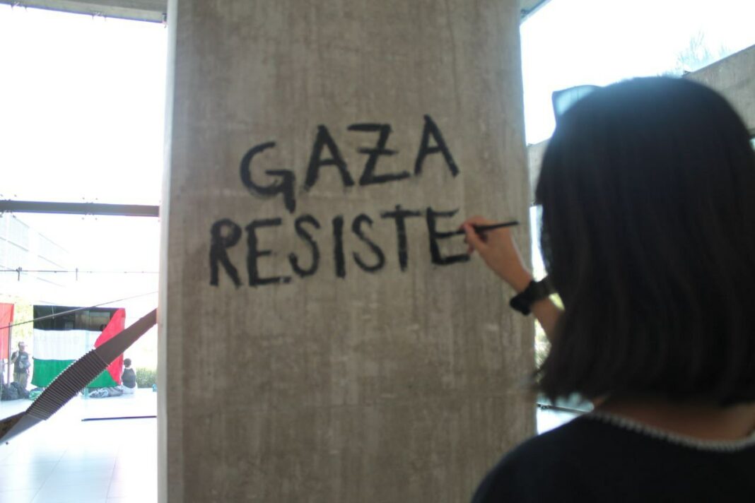 Tras una asamblea estudiantil y popular llevada a cabo este miércoles 8 de mayo a las 11 de la mañana en el Centro Universitario de Ciencias Sociales y Humanidades (CUCSH) de la Universidad de Guadalajara se decidió crear un campamento en solidaridad con las víctimas del genocidio que está ocurriendo en Palestina.