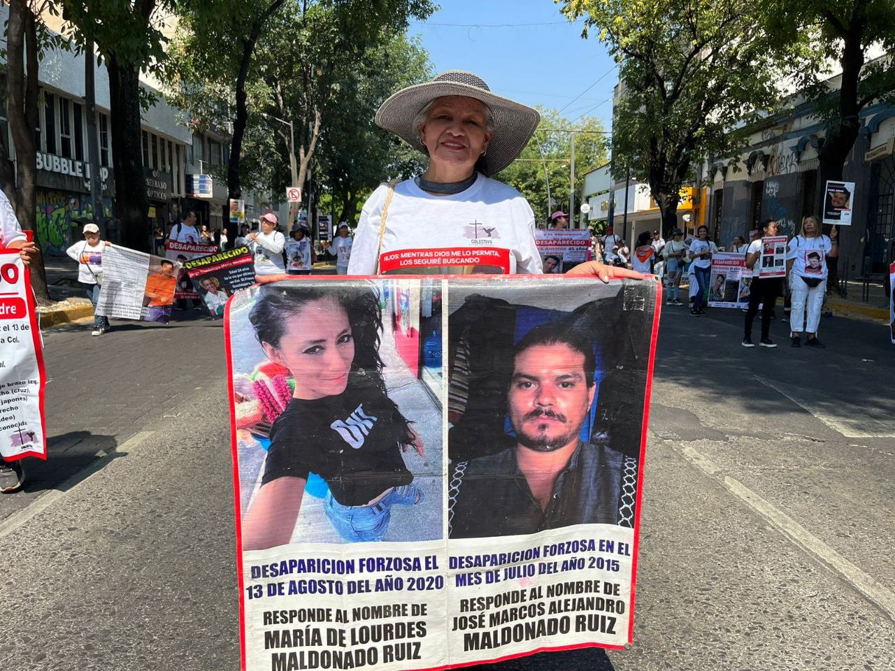 “Vengo a esta manifestación para que la imagen de mi hijo continúe viva. Desafortunadamente, no hay empatía mientras no vivamos algo similar, no entendemos el dolor. Antes de que desapareciera mi hijo, me daba cuenta y me dolía, pero no entendía la dimensión del dolor, de la problemática, no la entendía hasta ahora que la estoy viviendo”.
