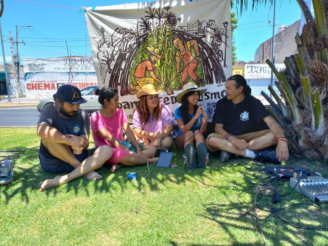 Bajo la sombra de un árbol, ante el incesante sol primaveral, y al finalizar la jornada de labor en la parcela, jardín medicinal y compostero comunitario en el CoamilFederalismo, se llevó a cabo una emisión más del programa de radio y podcast Radio Coamil, conducido por Melina Gil y Víctor Ibarra, con el tema: “Por la Libertad de Expresión y de Siembra en espacios públicos y comunitarios”, con la presencia de l@s periodistas invitad@s María “Wally” Ramírez Blanco y Fernando González Cobo, así como integrantes del Coamil Federalismo, quienes participaron en este diálogo radial, ante la mirada y escucha de los ciclistas que transitaban por la vía recreactiva, por un lado, y los automovilistas por el otro, el domingo 28 de abril.