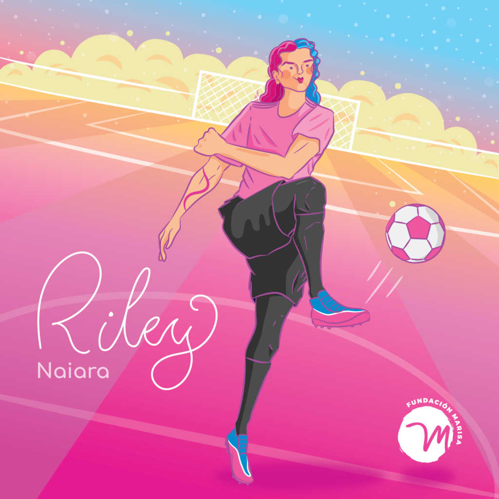 Cuando habla del fútbol, a Riley Naiara Sainz se le encienden los ojos. Menciona una y otra vez el disfrute como una de sus motivaciones más grandes para jugar. Nunca le ha interesado dedicarse profesionalmente, pero juega fútbol cinco o seis días a la semana con distintos equipos en diferentes ligas. Este deporte es central en su vida, es el desfogue y la expresión a la vez. Para ella, el fútbol es la posibilidad de “hacer magia”.
