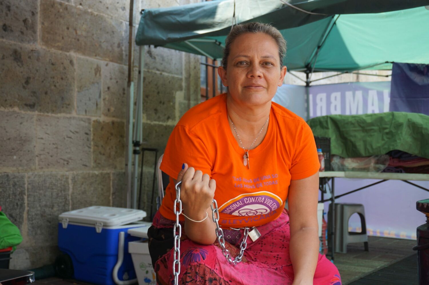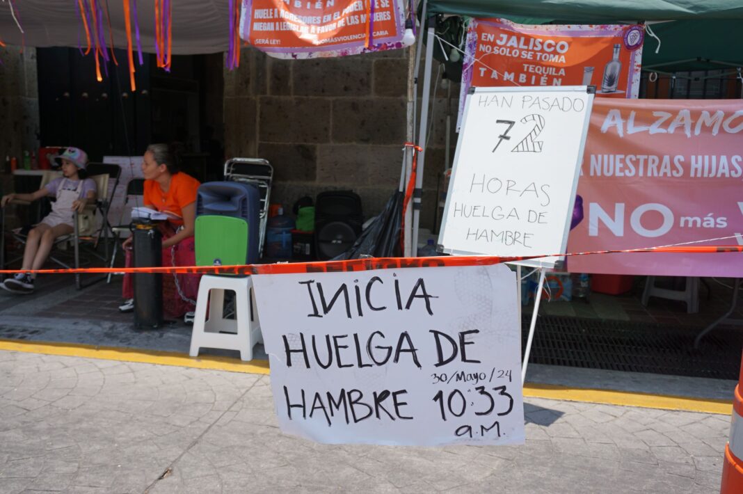 “El día viernes se nos invitó a retirarnos, que se va a sesionar, que se va a votar y que lo hagamos en nuestra casa y nuestra palabra es una realidad, es un hecho: no nos vamos a mover hasta que la #LeyVicaria se vote, no nos pensamos mover” afirmó Lisi Celis, representante del Frente Nacional contra la Violencia Vicaria (FNCVV) en Jalisco, este sábado 1 de junio, luego de cumplir 48 horas de haber iniciado una huelga de hambre a las afueras del Congreso del Estado de Jalisco.
