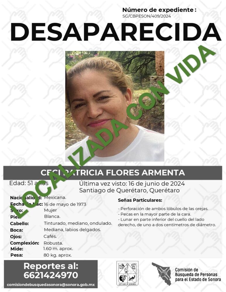Afortunadamente, luego de ingresar al domicilio, alrededor de las 20:30 horas del 17 de junio de 2024, se pudo comprobar que Cecilia Flores Armenta sí se encontraba ahí con vida, aunque para verificar su estado de salud recibió atención médica.