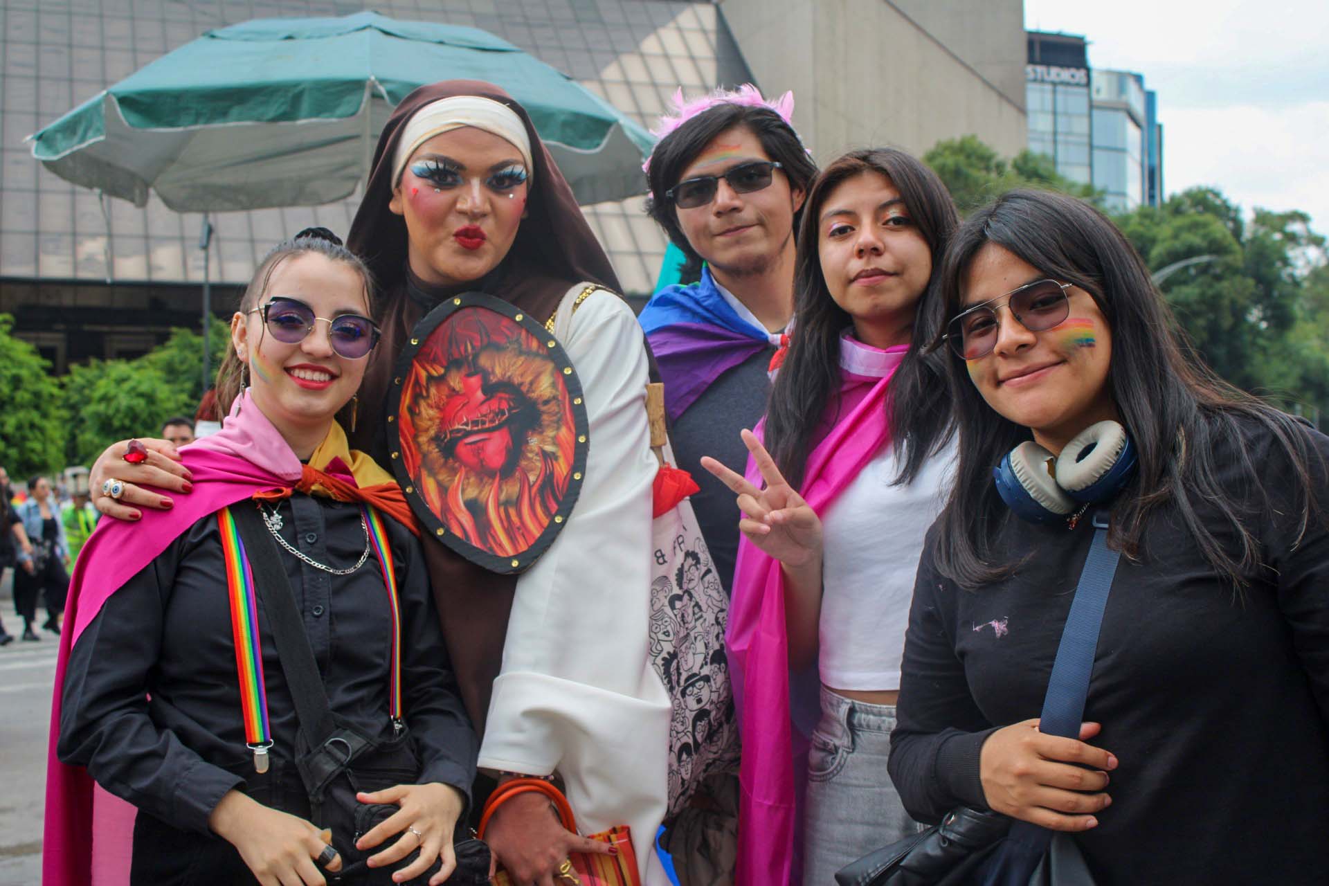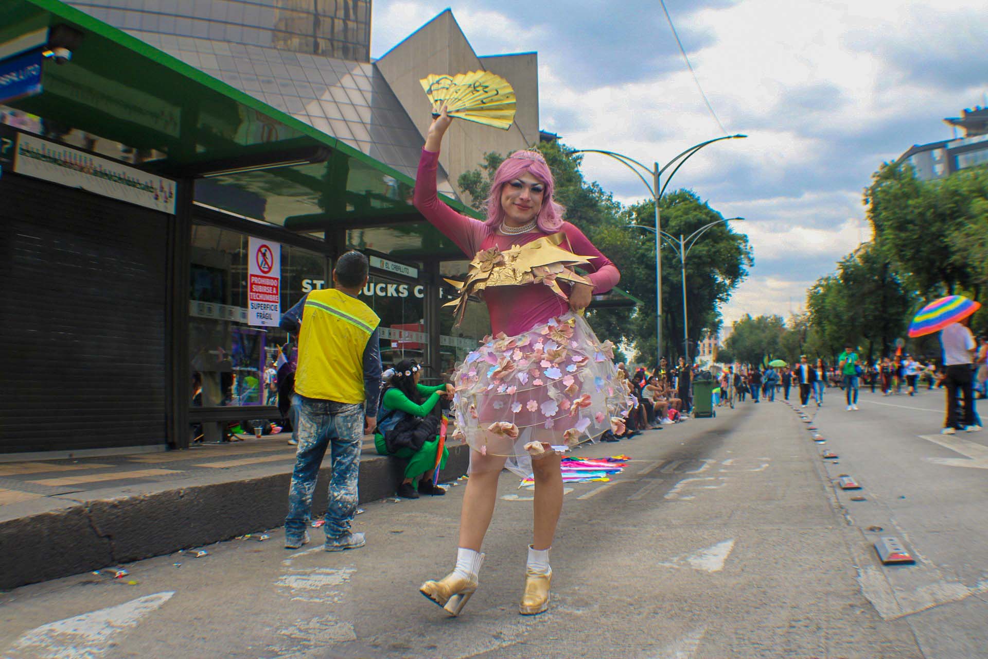 Entre la marea de contingentes que protestaron por un reconocimiento justo y sin violencia, se encontraron personas que, con vestuarios, pelucas y maquillajes despampanantes, hacían mención del orgullo al ritmo de la libertad de ser uno mismo.