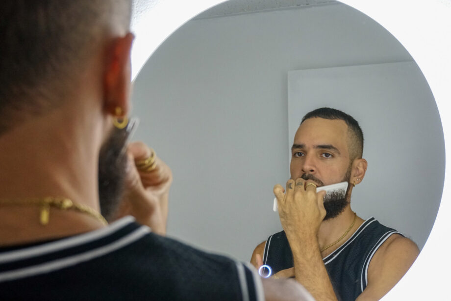 “Para producir aquí en Puerto Rico tenemos que asumir muchos roles”, dice Rubén Rolando. Cuando creó “Brillo de Coraje”, su primer EP de cinco canciones, tardó un año en completarlo, pero el tiempo no importa porque sueña con vivir de la música. “Para nosotres todo es trabajo y todo es compromiso y todo es sacrificio; no es raro para mí tenerme que zumbar a trabajar duro por nuestros sueños”, dice. “No se nos ha regalado nada”.