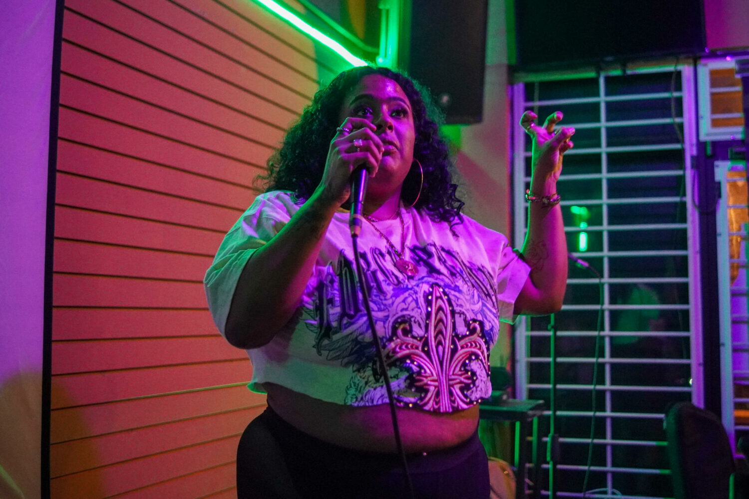 Baby Pau se presenta en el evento “Ayer me dejaron”, en Río Piedras, Puerto Rico, ante la mirada de decenas de espectadores.