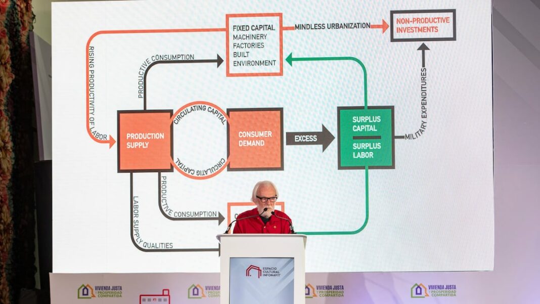 En cambio, en el campo visitante, se contó con David Harvey, el reconocido geógrafo y antropólogo que se ha vuelto un referente mundial en materia del derecho a la vivienda. Con él, asistió buena parte de la dirección de Urban Front (Ana Rodríguez, Miguel Robles-Durán y Gabriela Rendón).