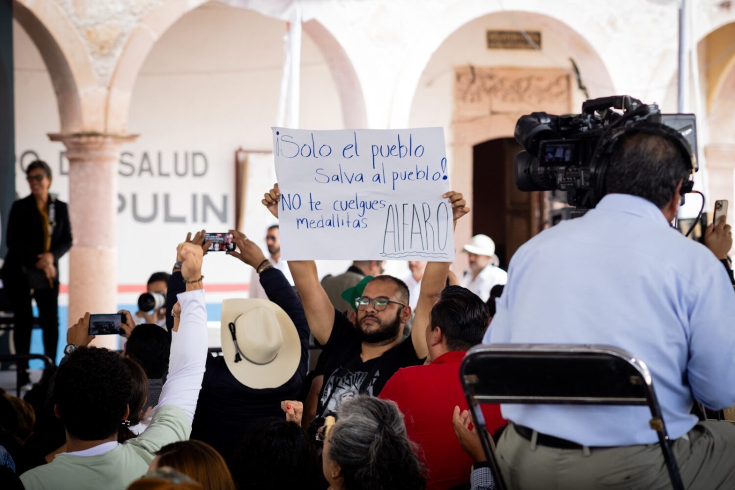 Durante la intervención del Gobernador Enrique Alfaro, fue recibido con consignas como “GoberLadrón, Fuera Alfaro”. Estos gritos se mezclaron con los de apoyo de un grupo considerable que había llegado con él y ocupó la mayoría de los asientos del evento, dejando fuera a los habitantes de las comunidad. La participación de Enrique Alfaro fue interrumpida en varias ocasiones, hasta que fue necesario que la próxima presidenta y Andrés Manuel López Obrador se levantaran para pedir a la audiencia que le permitieran continuar hablando.