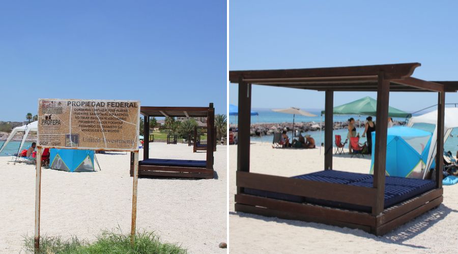 Las instalaciones de El Caimancito, Beach Club y de Playa de La Paz son para fines lucrativos, por lo tanto deberían de contar con una concesión de uso general otorgada por Zofemat otorgada por la Semarnat y hacer el pago correspondiente por el uso de la zona. Además, debería despegar únicamente mobiliario removible, pero no es así.