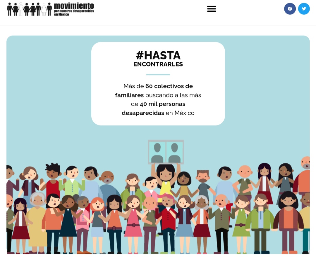 Una opción para encontrar información sobre colectivos es Movimiento por Nuestros Desaparecidos en México, que está conformado por más de 50 organizaciones de familiares que se encuentran en búsqueda y por más de 20 Organizaciones de Sociedad Civil de México y Centroamérica.