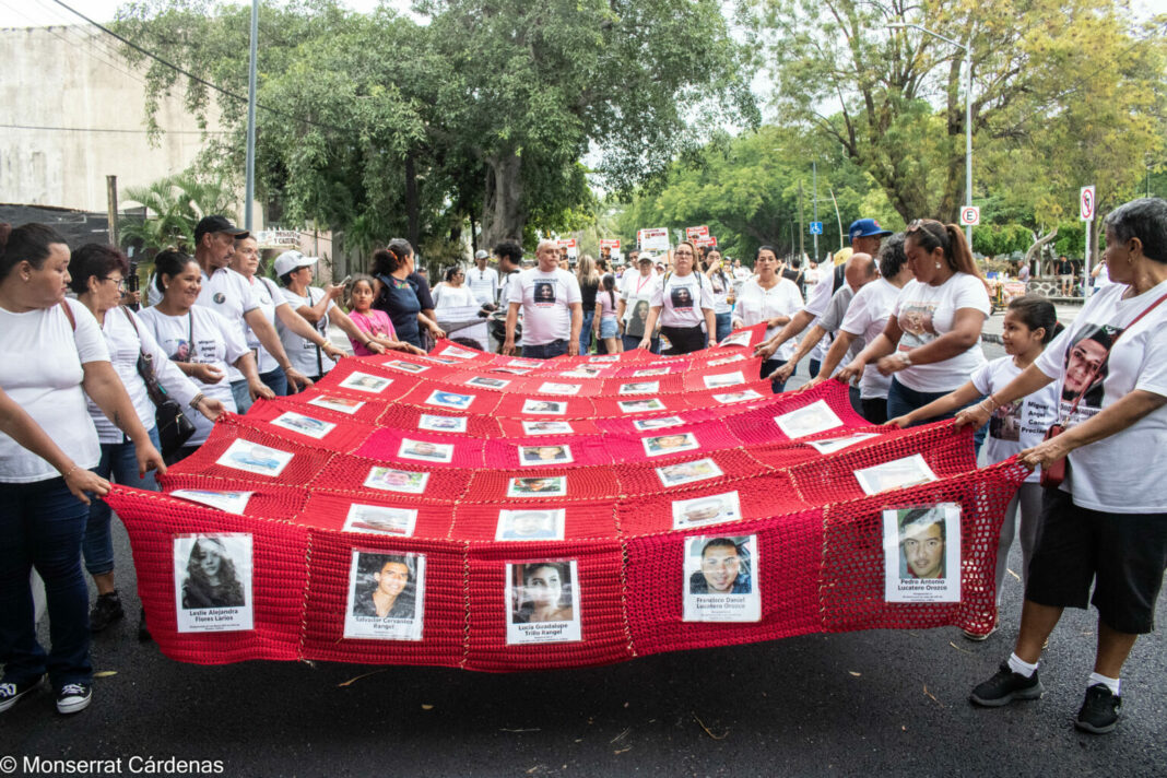 “El mundo nos rompe a todos, y luego algunos se hacen más fuertes en las partes rotas”, leyó al finalizar la movilización la Red de Desaparecidos Colima A.C. en su comunicado. Una frase del escritor Ernest Hemingway que inspira a las familias a entretejer lazos que las lleven a la resiliencia o, mejor dicho, a la resistencia, que hoy se encuentra simbolizada en el tejido rojo con decenas de fotografías que cargan las familias y que la gente mira con esquivez desde las banquetas en un viernes de quincena.