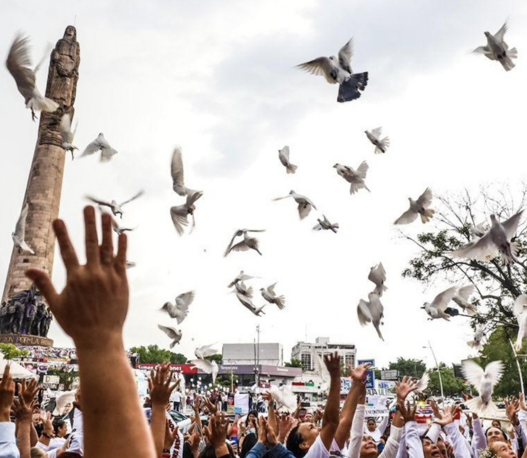 Después de la ceremonia religiosa, las familias buscadoras arrojaron globos y palomas al cielo con el nombre de sus seres queridos, esto como un acto de amor, resistencia, pero sobre todo con la esperanza de que sus hijas, hijos, hermanas, hermanos, madres, padres puedan regresar a su lado.