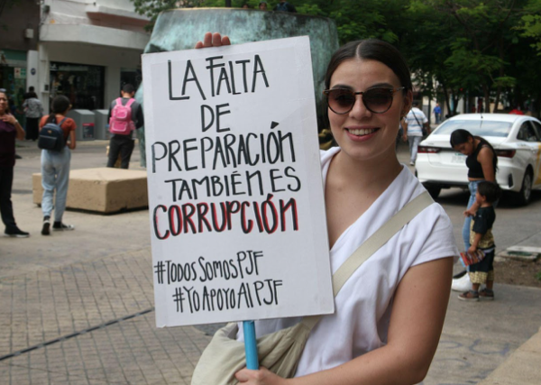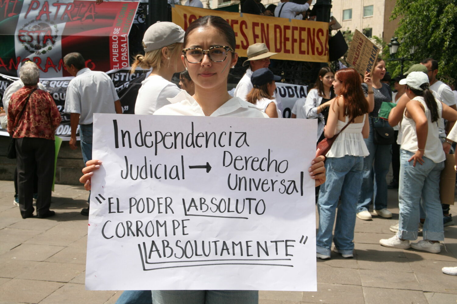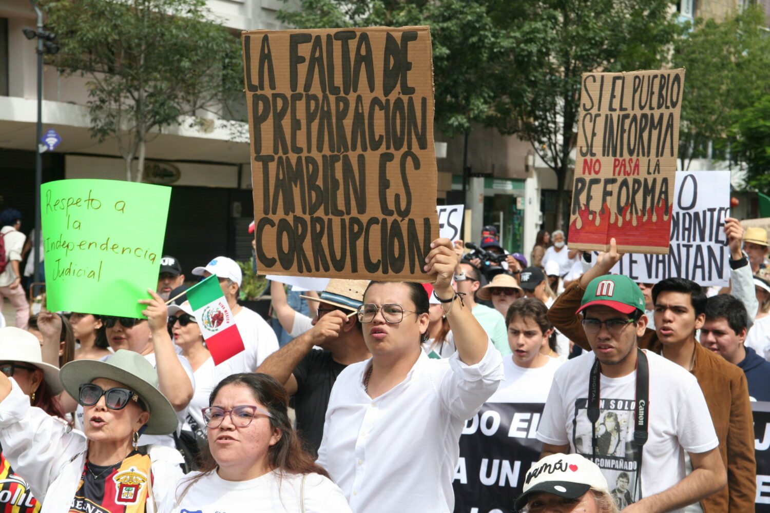 “Traigo aquí en mi cartel, “El poder absoluto corrompe absolutamente”, entonces, marcho por mi país. Yo sé que no hay ningún sistema perfecto, no, no lo hay, no existe y nunca va a existir y sí sé que el que tenemos actualmente tiene muchas lagunas, pero definitivamente la reforma que quieren hacer hoy en día está trastornando prácticamente al derecho. Es una reforma completamente absurda también, o sea, tiene muchas deficiencias y no creo que sea la más válida para el país en estos momentos”, señaló Dana Monroy, estudiante de la licenciatura en derecho de la Universidad Panamericana.