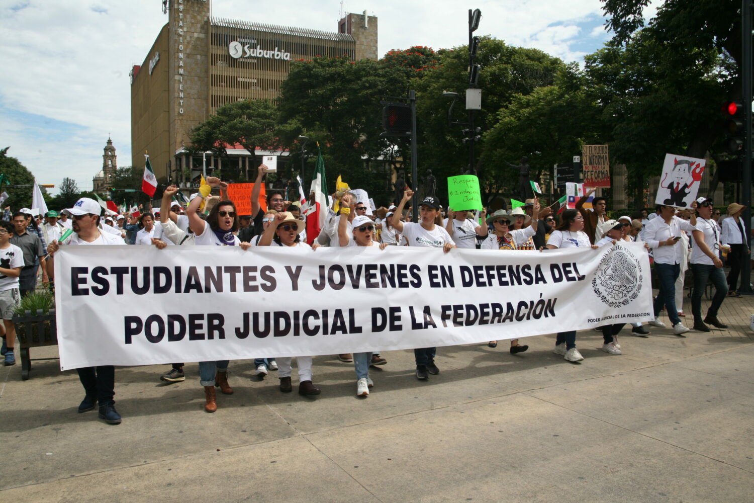 Con el lema “Estudiantes y jóvenes en defensa del poder judicial de la federación”, juventudes universitarias en Guadalajara marcharon este domingo 01 de septiembre para manifestarse en contra de la iniciativa de reforma, lo hicieron junto a trabajadoras y trabajadores del sistema judicial local.